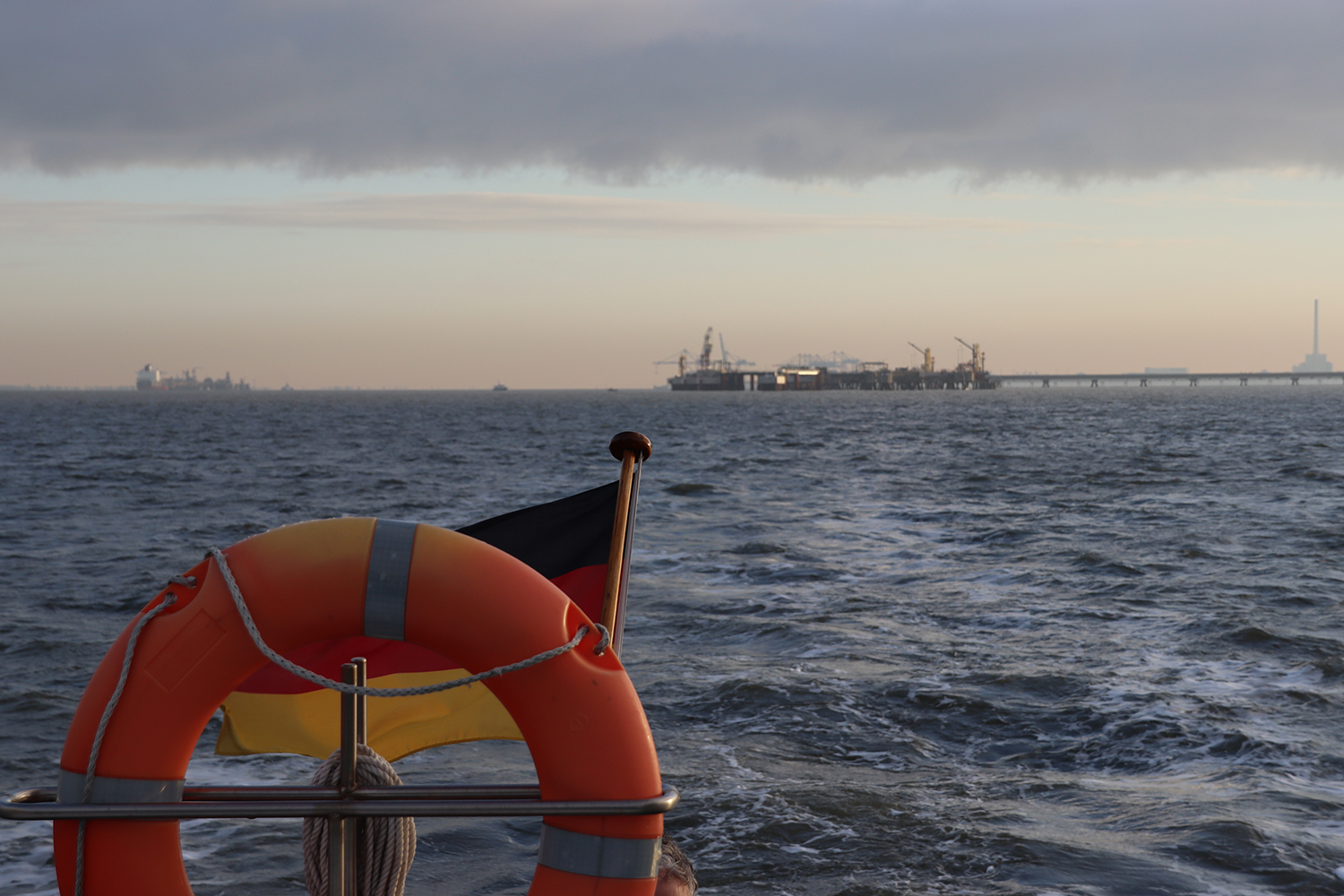 Schifffahrt: Das Wattenmeer ist eine wichtige Wasserstraße für den Schiffsverkehr. Häfen und Schiffsrouten sind notwendig für den Handel und die Versorgung der Küstenregionen. Auch hier gibt es strenge Regeln, um die Umwelt zu schützen. Dabei liegt das LNG-Terminal Wilhelmshaven 1 an dem Schifffahrtsweg zum Jade Weser Port, Deutschlands einzigem Tiefwasserhafen. Die FSRU „Höegh Esperanza“ liegt dennoch weit genug vom Fahrwasser entfernt, um die Seefahrt nicht zu beeinträchtigen.